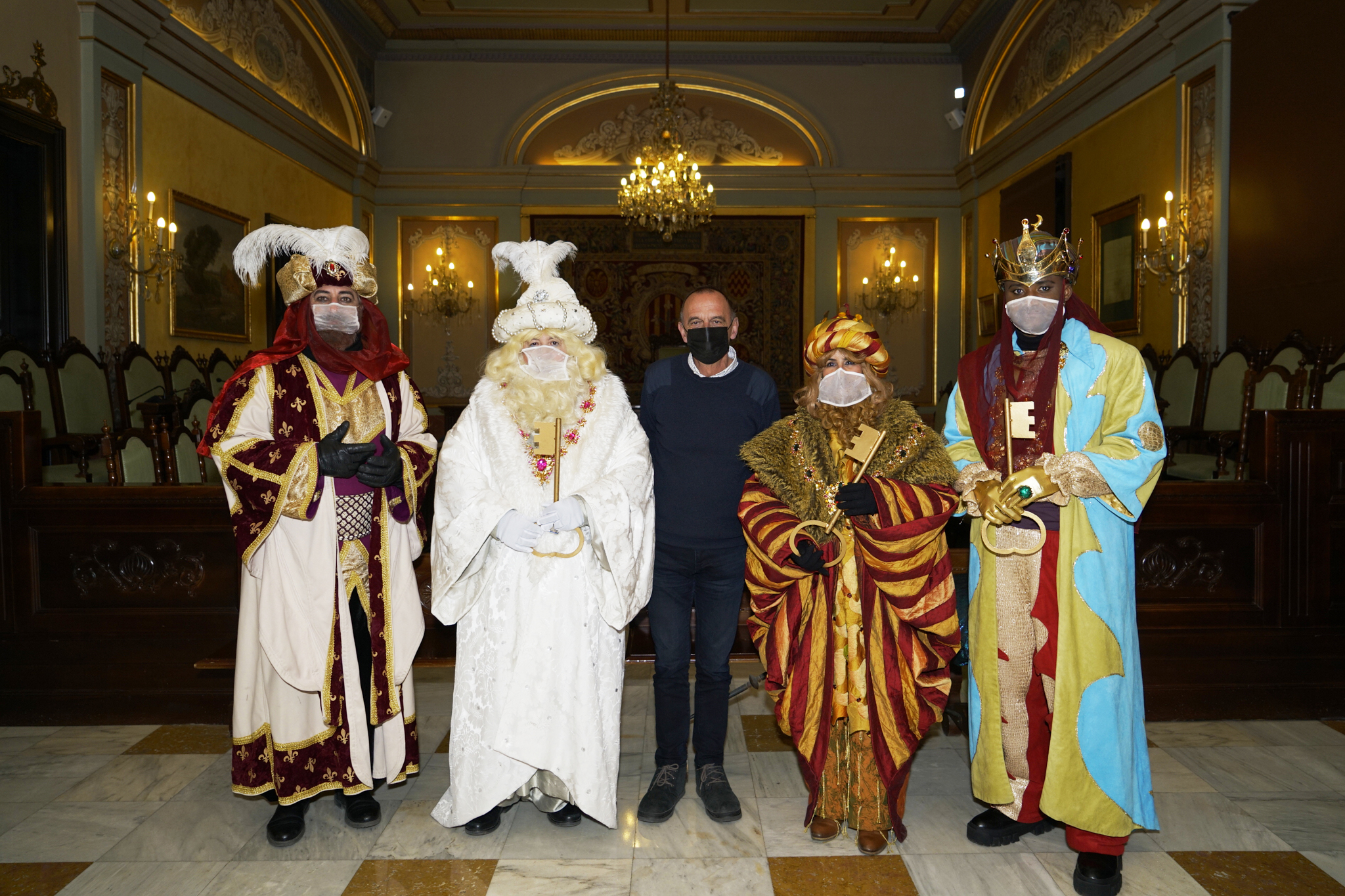 Allà han estat rebuts per l’alcalde i el regidor de Joventut, Festes, Tradicions i Esports, Ignasi Amor, abans de pujar al balcó, on Pueyo els ha fet entrega de les claus màgiques que obren totes les cases de la ciutat perquè puguin omplir-les de regals aquesta nit.