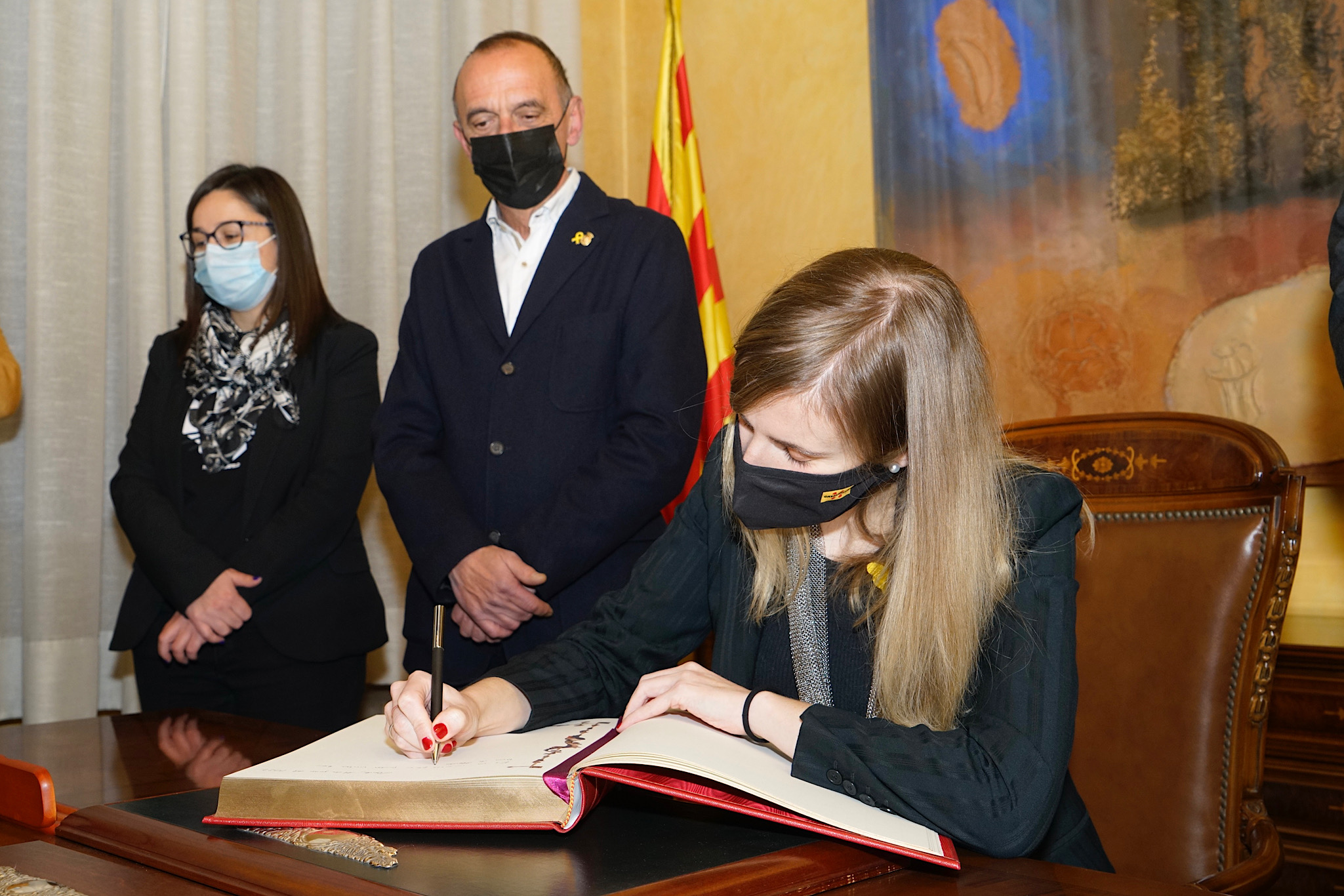 L’alcalde de Lleida, Miquel Pueyo, ha rebut Victòria Alsina, qui ha signat en el Llibre d’HonorLa consellera, que ha visitat la ciutat en el marc de la Conferència sobre el Futur d’Europa, ha destacat que el futur de les terres de Lleida és també el futur d’Europa i del món