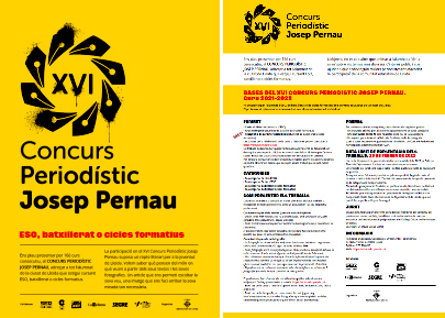 La Regidoria d’Educació de l’Ajuntament i la Demarcació a Lleida del Col·legi de Periodistes de Catalunya han obert la convocatòria de la XVI edició del Concurs Periodístic Josep Pernau, que promouen conjuntament entre l’alumnat d’ESO, Batxillerat i cicles formatius, amb l’objectiu d’animar-los a expressar el seu punt de vista sobre els temes més diversos d’interès públic.