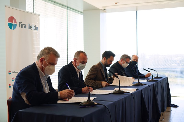 Els quatre patrons de Fira de Lleida, la Paeria, la Generalitat, la Diputació i la Cambra de Comerç, han signat avui un protocol de col·laboració interadministrativa en el qual es comprometen a col·laborar per a la construcció i posada en funcionament d’un nou pavelló firal que doni cobertura a les necessitats de creixement de Fira de Lleida i dignifiqui l’entorn.