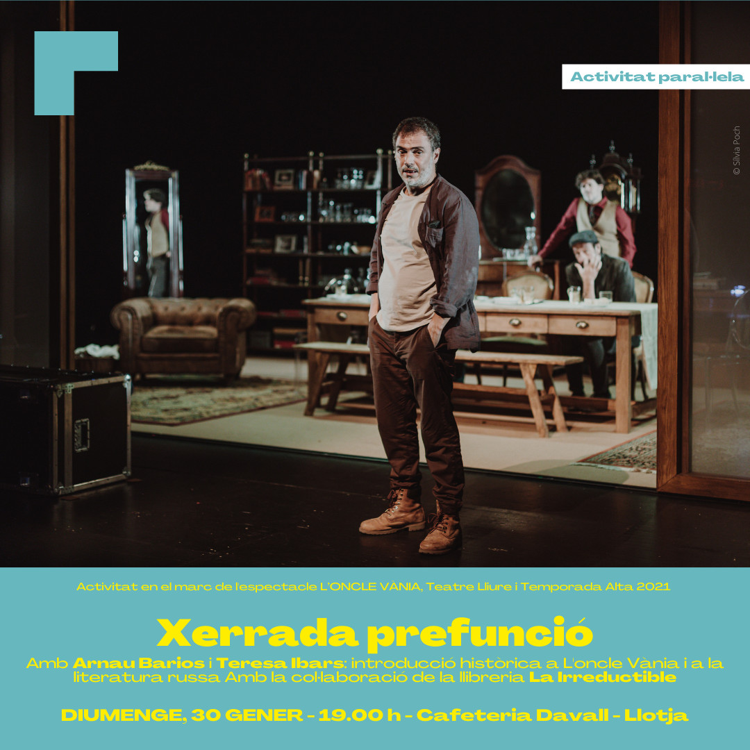 Un projecte emparat pel festival Temporada Alta i el Teatre Lliure, dirigit pel lituà Oskaras Koršunovas i amb un repartiment liderat per Julio Manrique i Anna Güell que interpreten l'obra de Txékhov, en què l'autor reflecteix en cada personatge un final apocalípticXerrada prefunció, a les 19 h, a la cafeteria Davall de la Llotja, amb Arnau Barios i Teresa Ibars, que faran una introducció històrica a "L'oncle Vània" i a la literatura russa. Amb la col·laboració de la llibreria La Irreductible