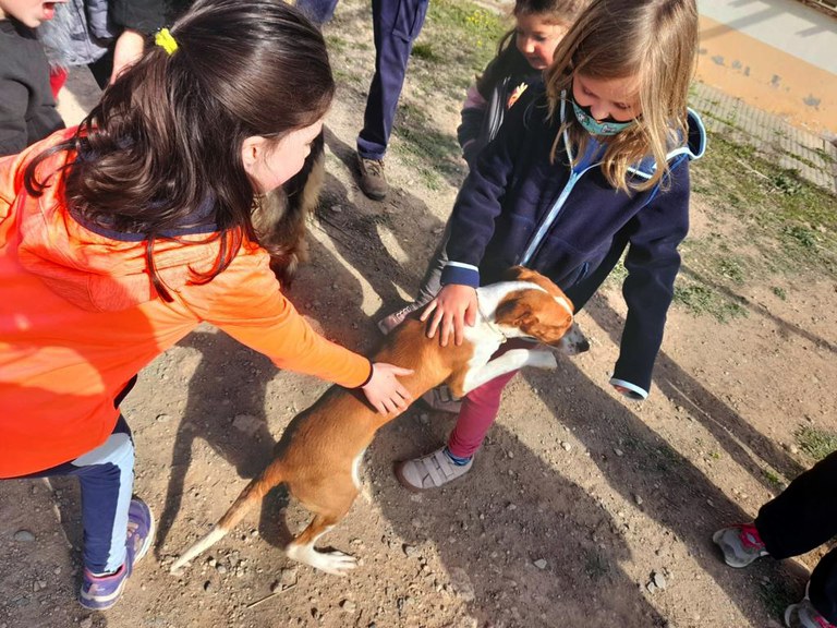 El moment estrella de la visita al centre ha estat quan els nens i nenes han pogut passejar alguns dels gossos pel recinte.
