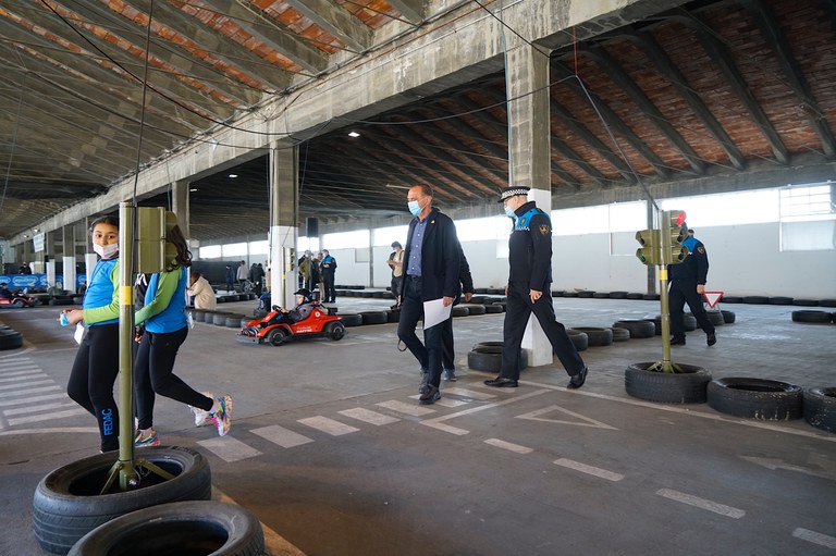 L’alcalde de Lleida, Miquel Pueyo, acompanyat de la tinent d’alcalde i regidora d’Educació, Sandra Castro, el regidor de Mobilitat, Joan Ramon Castro, i l’intendent de la Guàrdia Urbana, Josep Ramon Ibarz, ha visitat avui el Parc Infantil de Trànsit ubicat al Turó de Gardeny, un circuit on els infants, amb el suport educatiu d’agents de la Guàrdia Urbana de Lleida, posen en pràctica com s’ha de circular com a vianants, en bicicleta i en karts i quines són les normes de trànsit que s’han de complir a la via pública.