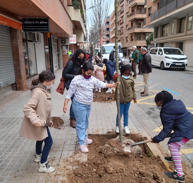 Aquest dilluns passat una vintena d’alumnes de tercer de Primària del Joan XXIII han participat en la plantació de 5 freixes de flor (Fraxinus ornus 'Obelisk') al carrer Doctor Combelles. Ahir dimarts, un total de 95 alumnes del centre Ciutat Jardí van ser també protagonistes de la plantació d’una vintena de lledoners americans (Celtis occidentalis) al carrer del Roure, en la qual també ha participat el regidor de Transició Ecològica, Jaume Rutllant.
