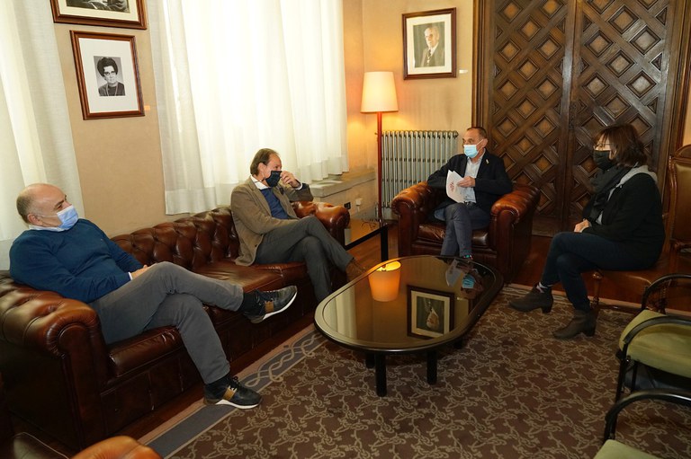 El president de la Fundació Àlex, Gabriel Masfurroll, i Agustí Solé, directiu del club Atlètic Lleida han presentat avui al paer en cap, Miquel Pueyo, i a la quarta tinent d’alcalde, Montse Pifarré, el projecte de futbol inclusiu que impulsen conjuntament, per a crear un equip “Genuine” format per jugadors i jugadores amb discapacitat intel·lectual, com a via per a promoure el seu benestar físic i emocional a través de l’esport i també la normalització de la discapacitat.
