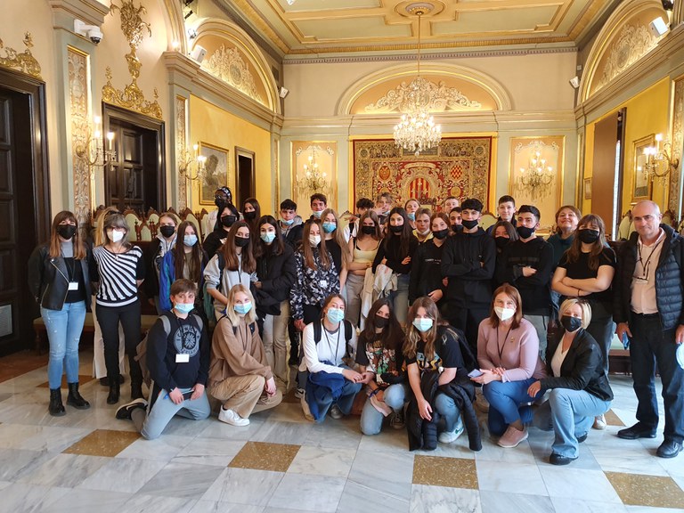 El Paer en Cap, Miquel Pueyo i la tinent d’alcalde d’Educació, Sandra Castro, han donat avui la benvinguda al Palau de la Paeria a un grup d’alumnes de tercer d'ESO que participen en un intercanvi Erasmus Plus organitzat per l’institut Manuel de Montsuar. Han participat en la visita un grup de vint estudiants i tres docents procedents de l’institut de Talsi, a Letònia, i una vintena més del centre lleidatà, acompanyats de dos professors.