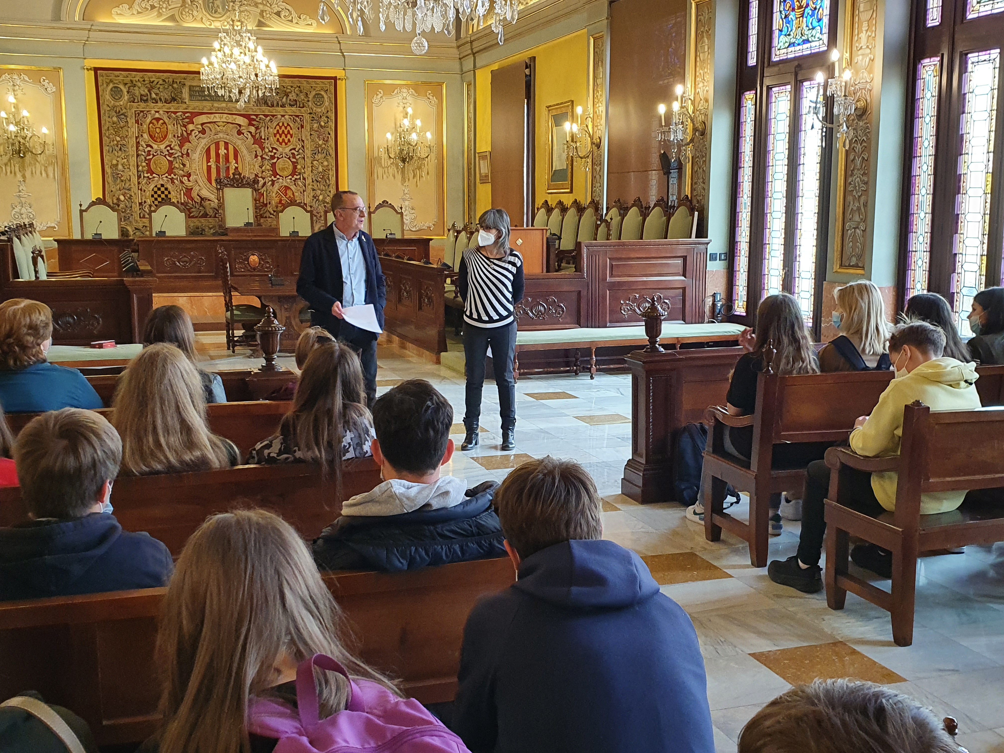 El Paer en Cap, Miquel Pueyo, i la tinent d’alcalde Sandra Castro han saludat als estudiants i els han explicat els orígens i funcions de la Paeria