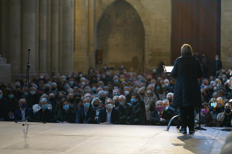 Jordina Freixenet ha fet aquesta reflexió durant la celebració del XXIII Pregó de la Setmana Santa a Lleida, que ha copresidit, juntament amb el bisbe Mons. Salvador Giménez Valls, a la nau central de la Seu Vella, i al qual també han assistit lel regidor Fèlix Larrosa, les regidores Marta Gispert, Cristina Morón i Ángeles Ribes, i el subdelegat del Govern central a Lleida, José Crespín.