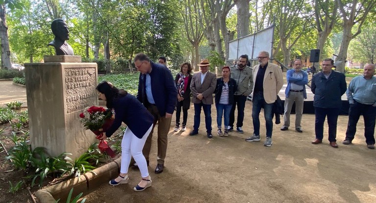 La tinent d’alcalde i regidora de Presidència de l’Ajuntament de Lleida, Jordina Freixanet, ha participat en l’ofrena floral, en companyia del secretari general de la UGT, José Luis Aguilà, i davant la presència dels també regidors Jaume Rutllant, Marta Gispert, Fèlix Larrosa, Jaume Sellés, Carme Valls i Joan Queralt.