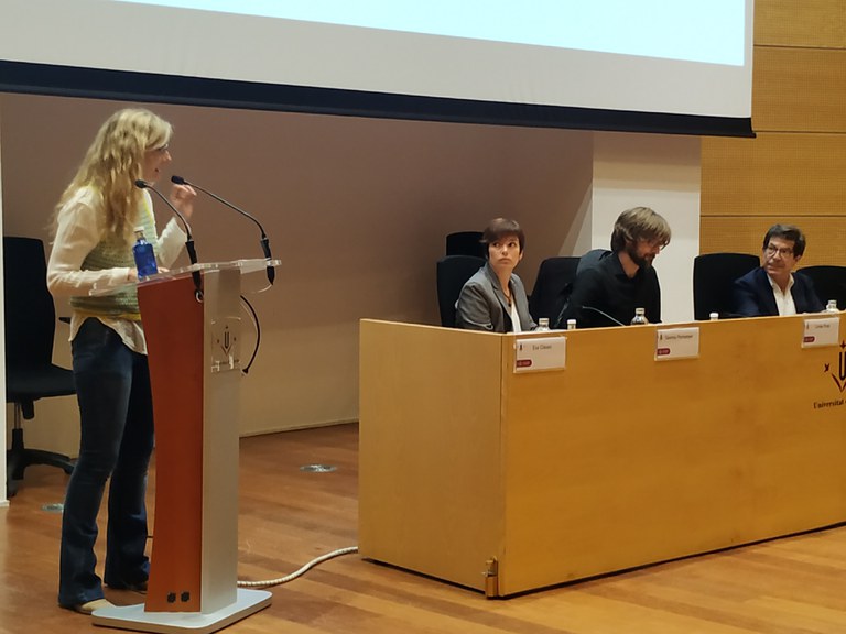 El simposi ha seguit amb una sessió sobre ‘Periodistes des de l’exili’, que ha moderat Laura Purroy. Els convidats han estat Mariana Morales (reportera freelance de Chiapas, Mèxic), Paulina Ríos (periodista de Oaxaca, Mèxic, fundadora del mitjà Página 3), Muhammad Subat (periodista i fotògraf de Síria) i Gabriela Mesones Rojo (periodista de Veneçuela).