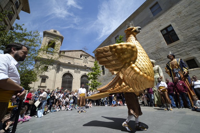 L’Àliga de la Ciutat ha realitzat el seu ball a la Plaça Paeria, amb l’apadrinament de les àligues de Reus i Agramunt, que l’han acompanyada en la cercavila per l’Eix Comercial fins a la plaça de la Catedral.