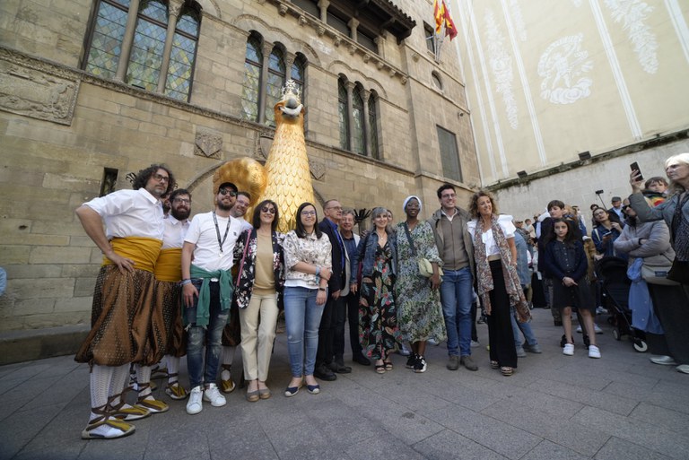 Un nombrós públic familiar ha omplert la plaça Paeria per a conèixer aquest nou element del seguici de la ciutat. També hi ha estat presents el regidor de Festes i Tradicions, Ignasi Amor; les i el tinent d’alcalde Toni Postius, Jordina Freixanet, Sandra Castro i Montse Pifarré, així com els i les regidores Jaume Rutllant, Mariama Sall, Joan Ramon Castro, Marta Gispert, David Melé, Maria Antoni Maller i Sergio González.