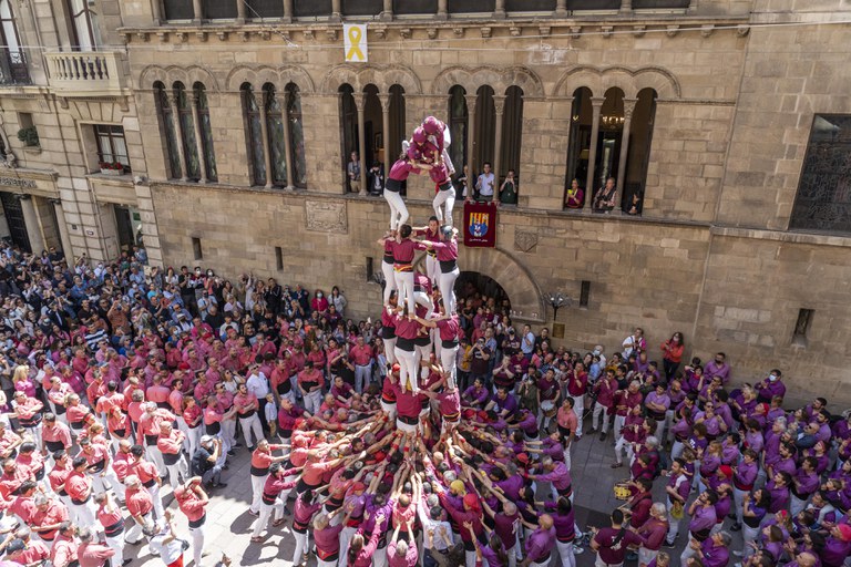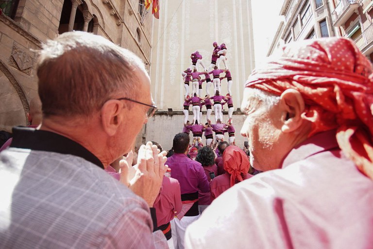 Gran diada castellera a la plaça de la Paeria per la Festa Major de Lleida