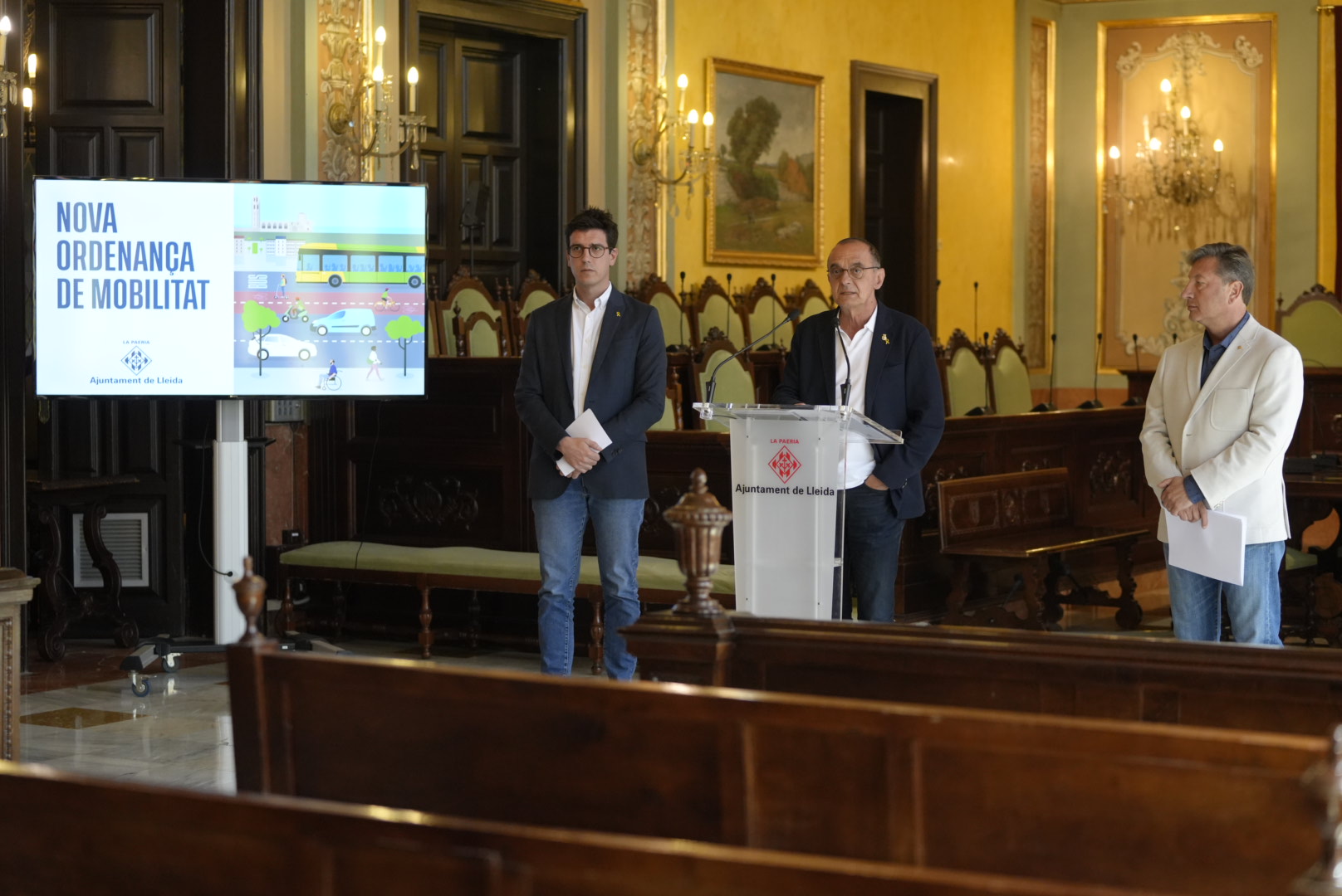El paer en cap, Miquel Pueyo, acompanyat del primer tinent d'alcalde, Toni Postius, i del regidor de Mobilitat, Joan Ramon Castro, ha explicat que la Paeria posarà en marxa una campanya per a difondre les novetats en la normativa i també el conjunt del seu contingut, per tal de facilitar el seu coneixement i compliment per part de tota la ciutadania, com a vianants i usuaris dels diferents mitjans de transport.