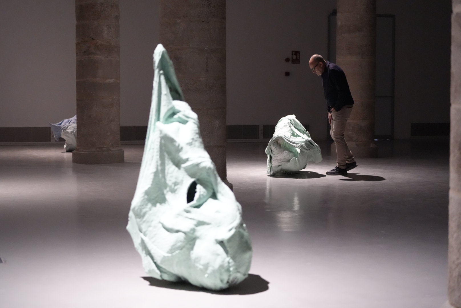 Deixar que l’escultura atengui i respongui a les seves qualitats intrínseques, intervenint el necessari perquè agafi lloc, requereix un exercici somàtic d’escolta i un maneig en temps real amb el procediment material. Necessita certa força física i una atenció als ritmes en els quals es disposen els seus elements. En les agrupacions que formen part d’aquesta exposició, el treball no es fa —o no només— amb les mans, sinó amb tot el cos: amb els dits, els palmells, els canells, els braços, les espatlles, les axil·les, els omòplats, l’esquena, el pit, el ventre, la pelvis, les cames, el cap.