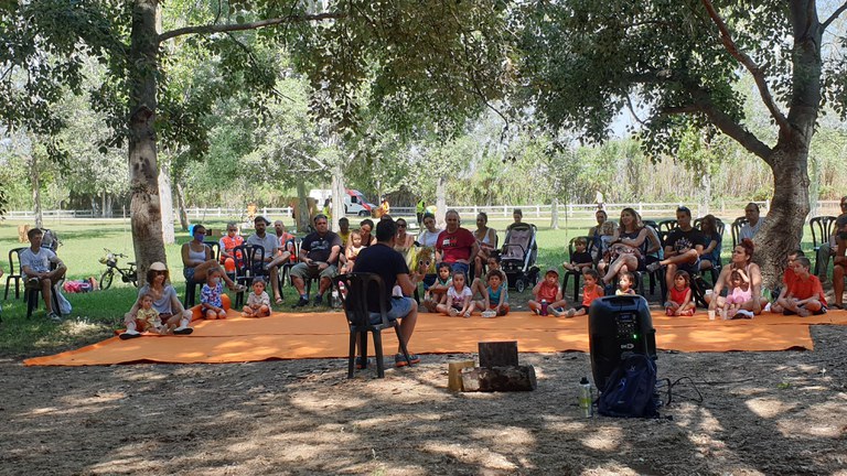 Aquest matí, tot i la forta calor, més de 200 persones s’han acostat fins al parc natural per gaudir dels jocs i tallers que s’han preparat i, especialment, de la sessió de contes amb l’Ivan Rabassa, que ha fet una tria de narracions molt adients per la jornada.