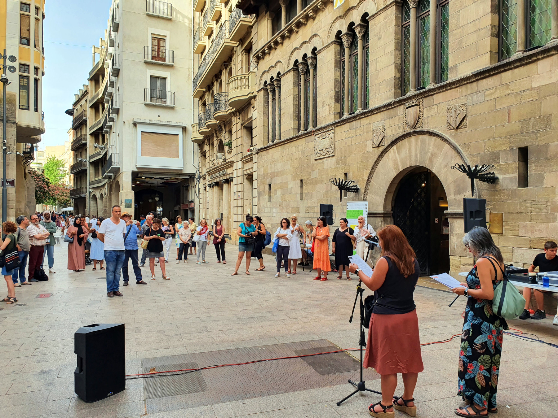 La tinent d'alcalde d'Educació, Cooperació, Drets Civils i Feminismes, Sandra Castro, i la diputada d'Igualtat de la Diputació de Lleida, Helena Martínez, han estat les encarregades de llegir el manifest impulsat pel Fons Català de Cooperació, amb una visió de gènere, en la concentració convocada a les set de la tarda davant de la Paeria. "Des de l'Ajuntament de Lleida ens comprometem a seguir aportant recursos i seguir treballant per revertir la situació inhumana en què es troben milers de persones arreu. També per activar tots els mecanismes que estiguin al nostre abast per garantir una acollida digna a casa nostra", recull el manifest.