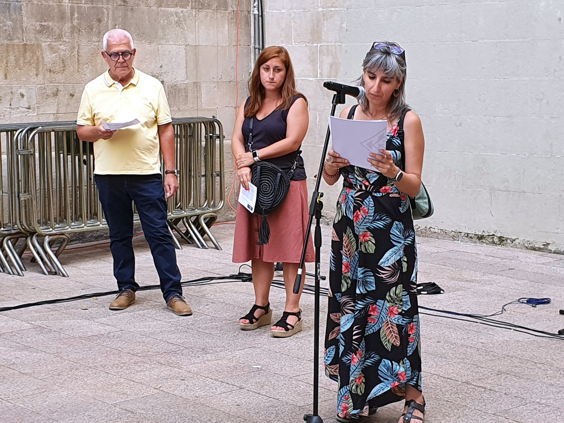 La tinent d'alcalde Sandra Castro i la diputada provincial Helena Martínez han llegit aquesta tarda el manifest de la jornada en el qual l'Ajuntament de Lleida es compromet a treballar per revertir la "situació inhumana" de milers de persones refugiades i per a garantir-los-hi una acollida digna