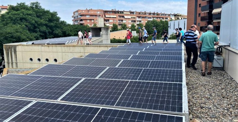Una trentena de persones coneixen de primera mà aquesta instal·lació de 108 panells solars, la primera per autoconsum compartit de l’Ajuntament de Lleida