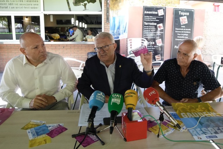 L’Ajuntament de Lleida, a través de Turisme de Lleida i de la Regidoria de Salut Pública, en col·laboració amb la Federació d’Hostaleria de Lleida i el suport de la Federació de Veïns i Veïnes de Lleida, han presentat avui la campanya GAUDEIX – RESPECTA, per a fomentar el civisme i la responsabilitat de les persones que, legítimament, gaudeixen del seu temps de lleure en terrasses o zones d’oci. La presentació ha estat a càrrec del president de Turisme de Lleida, Paco Cerdà; el gerent de la Federació d’Hostaleria, Ramon Solsona, i el president de la Federació d’Associacions de Veïns i Veïnes de Lleida (FAVLL), Toni Baró.