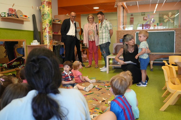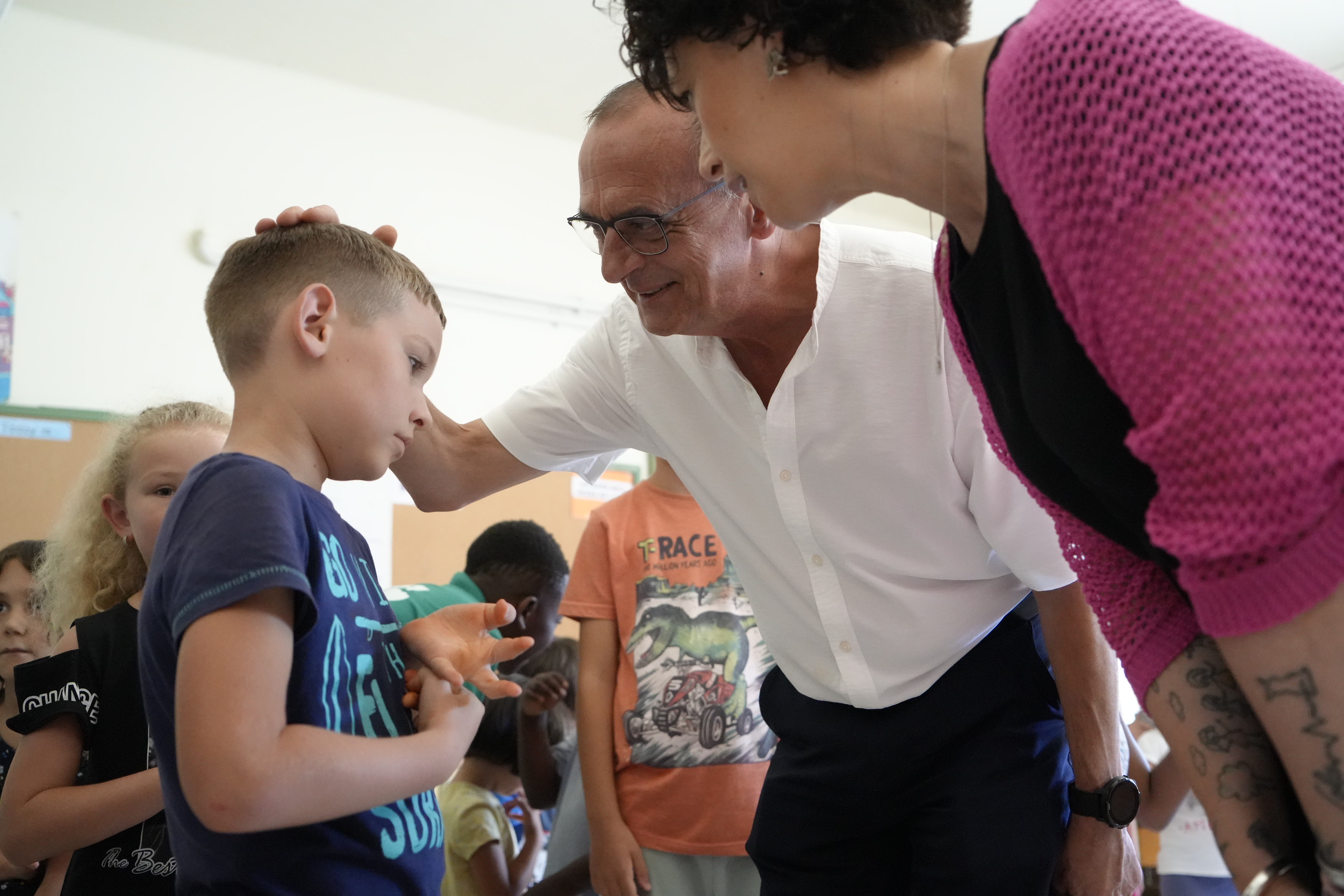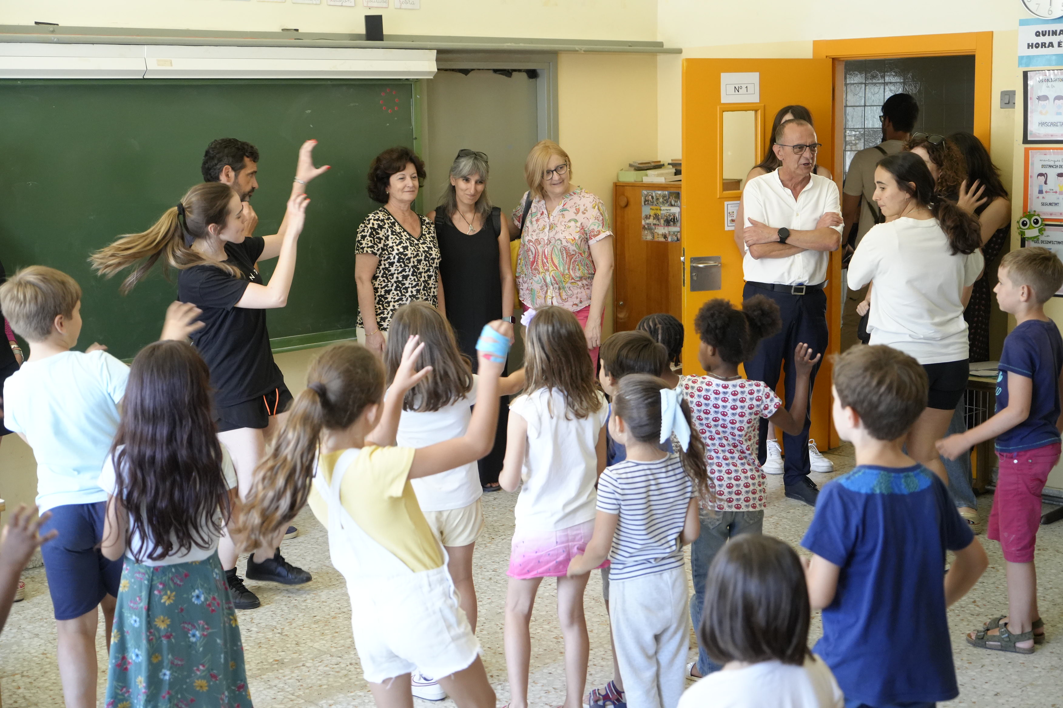 El Paer en Cap, Miquel Pueyo, acompanyat de la tinent d’alcalde Sandra Castro, i els directors dels serveis territorials de les conselleries d’Educació i Igualtat i Feminismes, Claudi Vidal i Elena Fuses, ha visitat avui els casals Estiu de Petits i Estiu de Joc a l’escola bressol d’Albarés i a l’escola Santa Maria de Gardeny, on ha pogut saludar els infants i monitors que participen en aquestes activitats de lleure educatiu per a les famílies de Lleida.