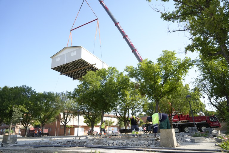 “En el marc del desenvolupament del parc de Ciutat Jardí, calia traslladar aquest element prefabricat perquè de cara a la tardor es procedirà a plantar la resta dels arbres. Durant aquests darrers mesos s’han fet els treballs de fonamentació, avui s’ha fet el trasllat i ara s’acabarà de fer la instal·lació i les connexions dels serveis bàsics i del clavegueram, perquè tingui la seva funcionalitat definitiva i es pugui ‘reinaugurar’ de cara a la festa major del barri al setembre”, ha explicat Postius.