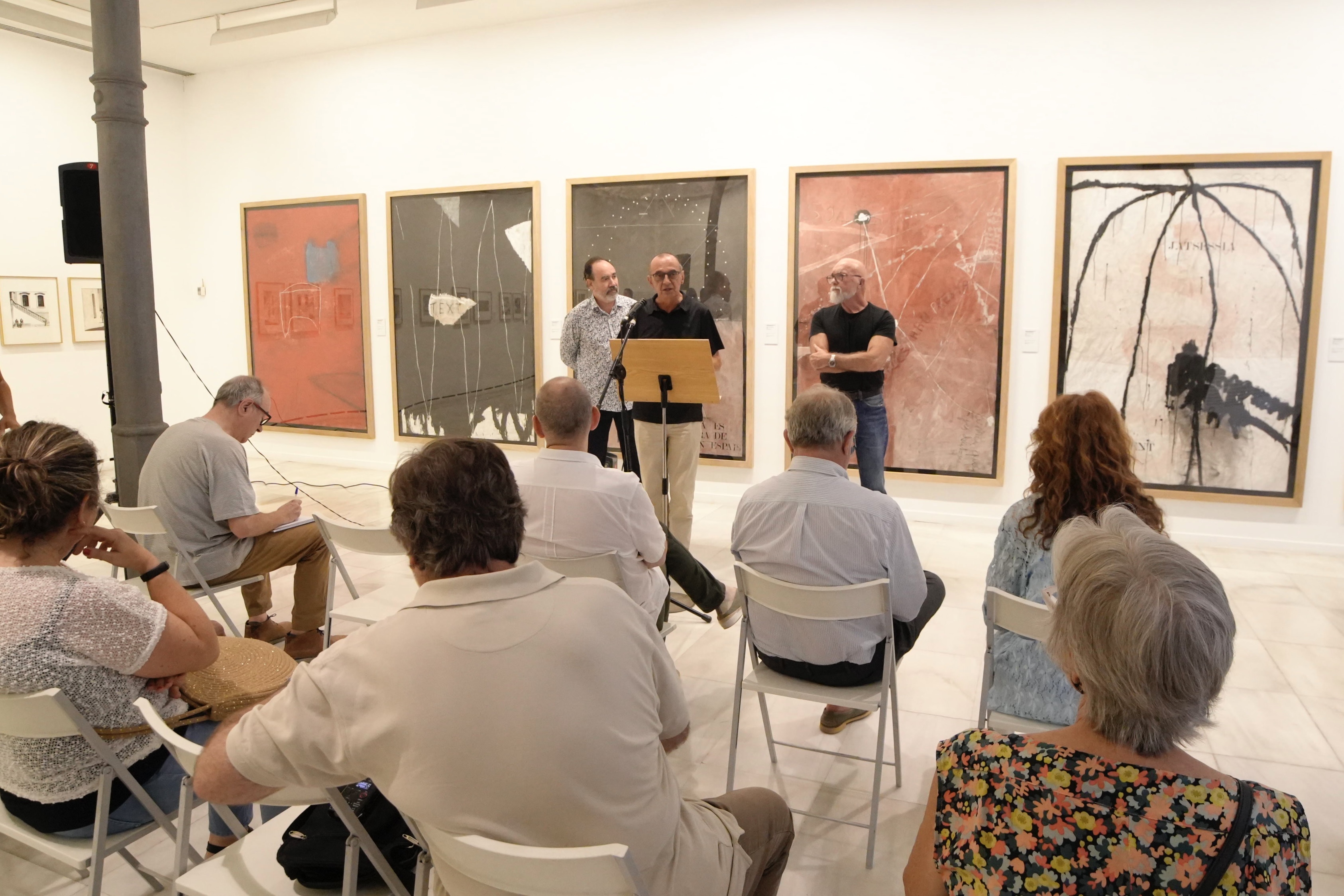 L’alcalde Miquel Pueyo agraeix la generositat i compromís de l’artista amb Lleida i el museu, perquè ajuda a entendre el nostre país per mitjà d’un discurs teixit entre un poeta de les lletres i un altre del color El director Jesús Navarro afirma que aquestes obres permeten interpretar el debat filosòfic, polític i artístic que ambdós artistes van mantenir i que es vivia en el turbulent temps de la transició