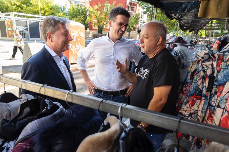 El tinent d’alcalde Toni Postius i els regidors Joan Ramon Castro i Marta Gispert saluden els establiments comercials i entitats ciutadanes que promouen una quinzena d’activitats als carrers Postius convida la ciutadania a participar en els actes de la Setmana de la Mobilitat per manifestar la sensibilitat vers el medi ambient i la sostenibilitat