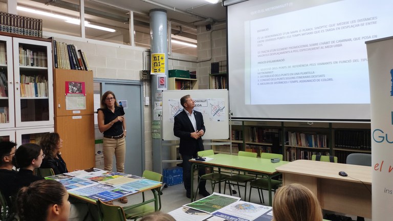 Els alumnes treballen sobre el Metrominut com a activitat de formació orientada a millorar el seu coneixement de l'entorn proper, fomentar els desplaçaments actius i ser conscients del temps i distància que hi ha entre els diferents indrets de referència de la ciutat.