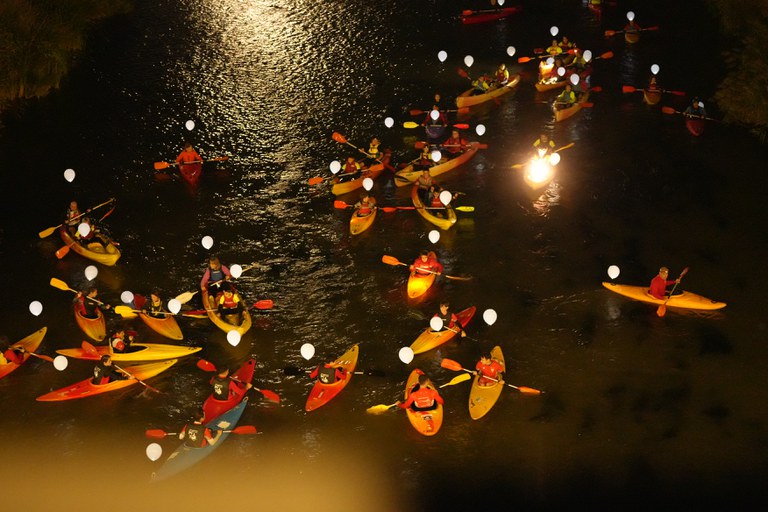 El descens de 75 piragües amb globus il·luminats per la canalització del Segre abans del festival pirotècnic, la novetat d’una programació festiva que finalitza amb un èxit participatiu i d’organització