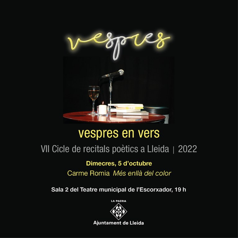 Lleida torna a acollir una nova edició del cicle Vespres en vers, per setè any consecutiu, amb la proposta de tres recitals de poetes de la ciutat, que se sumen als celebrats des del 2016. Amb els d’enguany, hauran participat en el cicle una trentena de creadors de la Paraula. L’edició d’enguany, a més, coincideix amb una commemoració important, la de la celebració del centenari del naixement de l’escriptor agramuntí Guillem Viladot, una figura polièdrica i innovadora en el terreny creatiu que va deixar un llegat ingent en molts dels gèneres literaris, també el poètic.