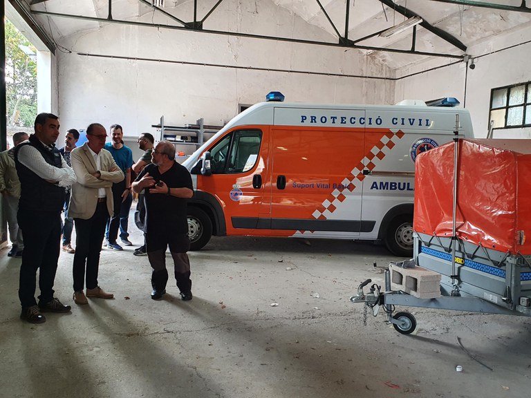 L’alcalde de Lleida, Miquel Pueyo, acompanyat pel President de l’Associació de Voluntaris de Protecció Civil, Josep Lluís Valls, i diversos voluntaris de l’entitat, ha visitat avui les instal·lacions municipals de l’Associació ubicades al Turó de Gardeny.