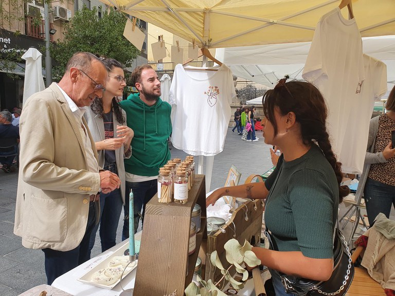 El paer en cap ha compartit una estona amb els joves artistes i artesans, que avui venen els seus productes, durant tot el dia, a la Plaça de la Catedral.