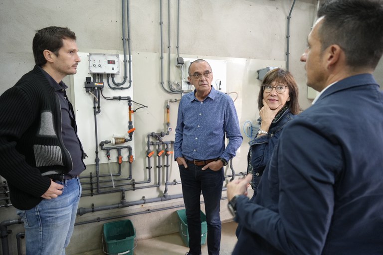 El Paer en Cap, Miquel Pueyo, i la tinent d’alcalde i regidora de Recursos Municipals, Hisenda i Salut, Montse Pifarré, han visitat aquest matí les instal·lacions de captació d’aigua potable de l’embassament de Santa Anna que abasteixen els municipis de la Mancomunitat Intermunicipal de l'Abastament d'Aigua de Pinyana, com és el cas de Lleida.
