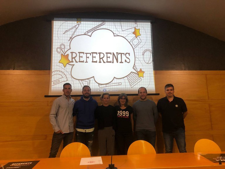 La sala Jaume Magre ha acollit la presentació de “Referents”, un projecte socioesportiu i de valors que arribarà, en una primera fase, a vuit centres educatius. La tinent d’alcalde i regidora d’Educació, Cooperació, Drets Civils i Feminismes, Sandra Castro, i el regidor de Joventut, Festes, Tradicions i Esports, Ignasi Amor, acompanyats de les persones impulsores del projecte, han estat els encarregats de presentar aquesta iniciativa que s’inclourà dins el programa municipal d’Educació a l’Abast.
