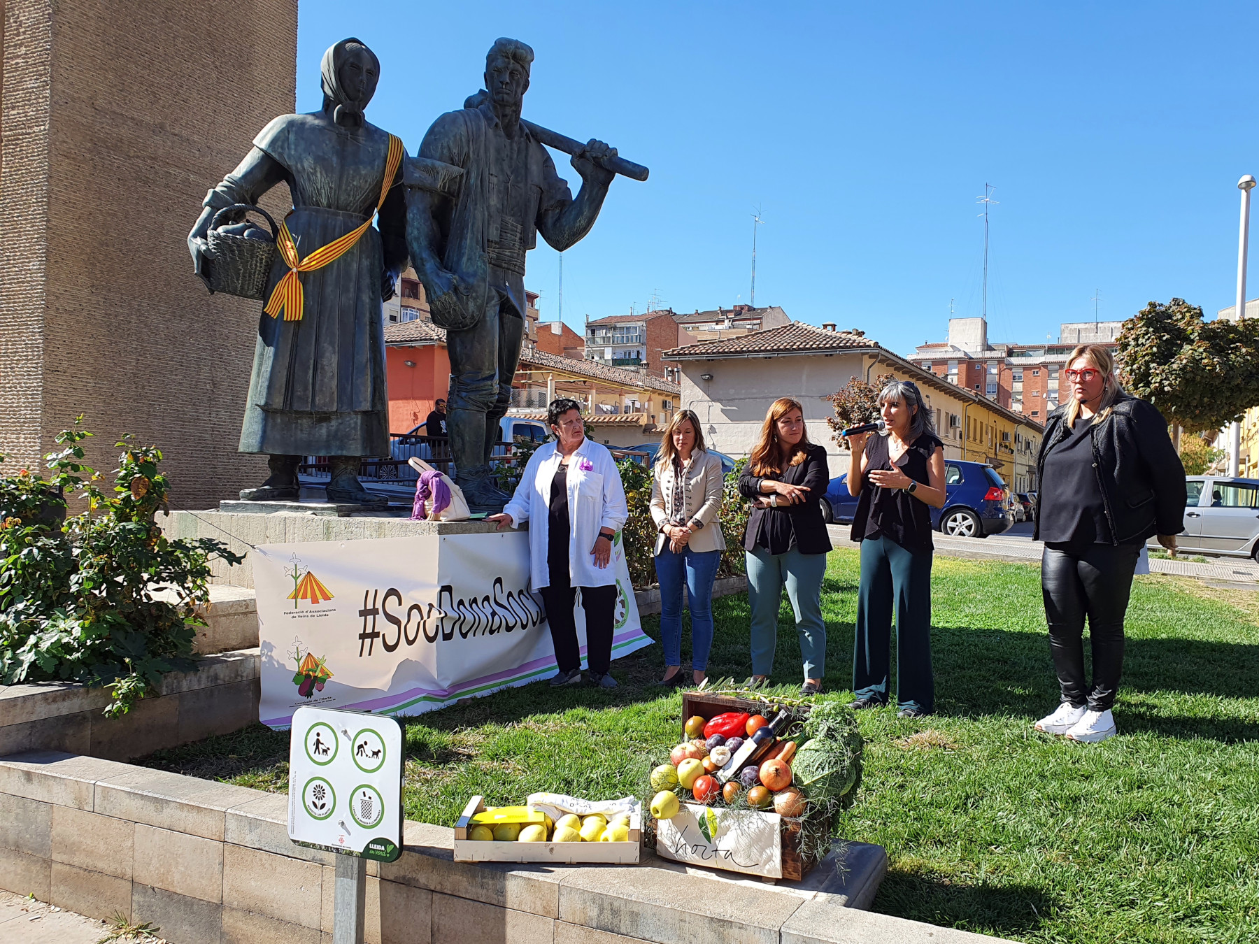 La plaça dels Pagesos ha acollit aquest migdia, davant del monument dedicat a la pagesia, l'acte central de la Festa de les Dones de l'Horta de Lleida, dins del Dia Internacional de la Dona Rural, que ha volgut posar en relleu el paper cabdal que sempre han tingut les pageses en la vida món agrari i reivindicar la igualtat, també en aquest àmbit.