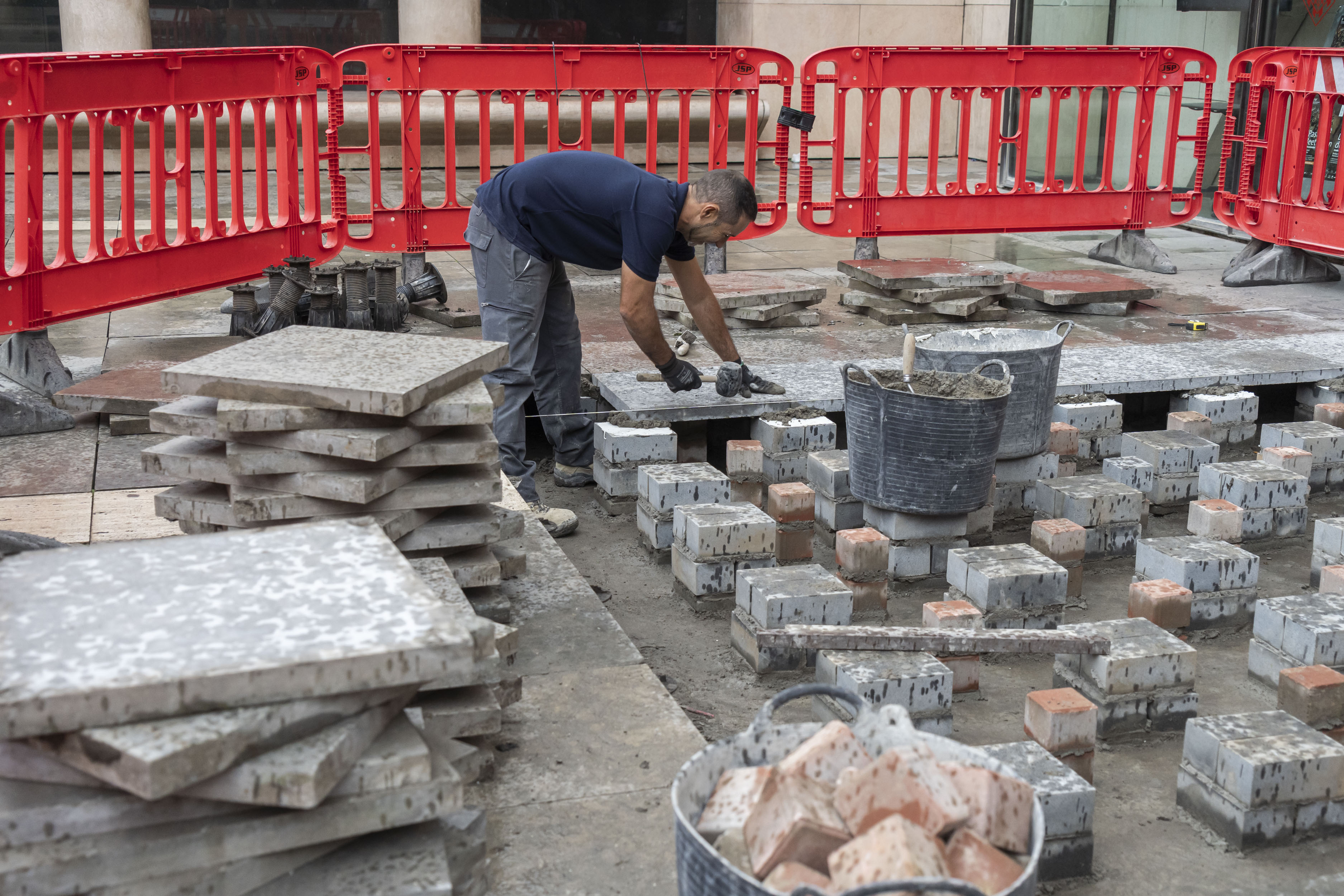 L’Ajuntament de Lleida està executant obres de millora del paviment en dos punts als extrems de l’Eix Comercial on es trobava en mal estat, a l’accés a l’Auditori Municipal Enric Granados i al carrer Alcalde Costa, en el seu tram per a vianants.