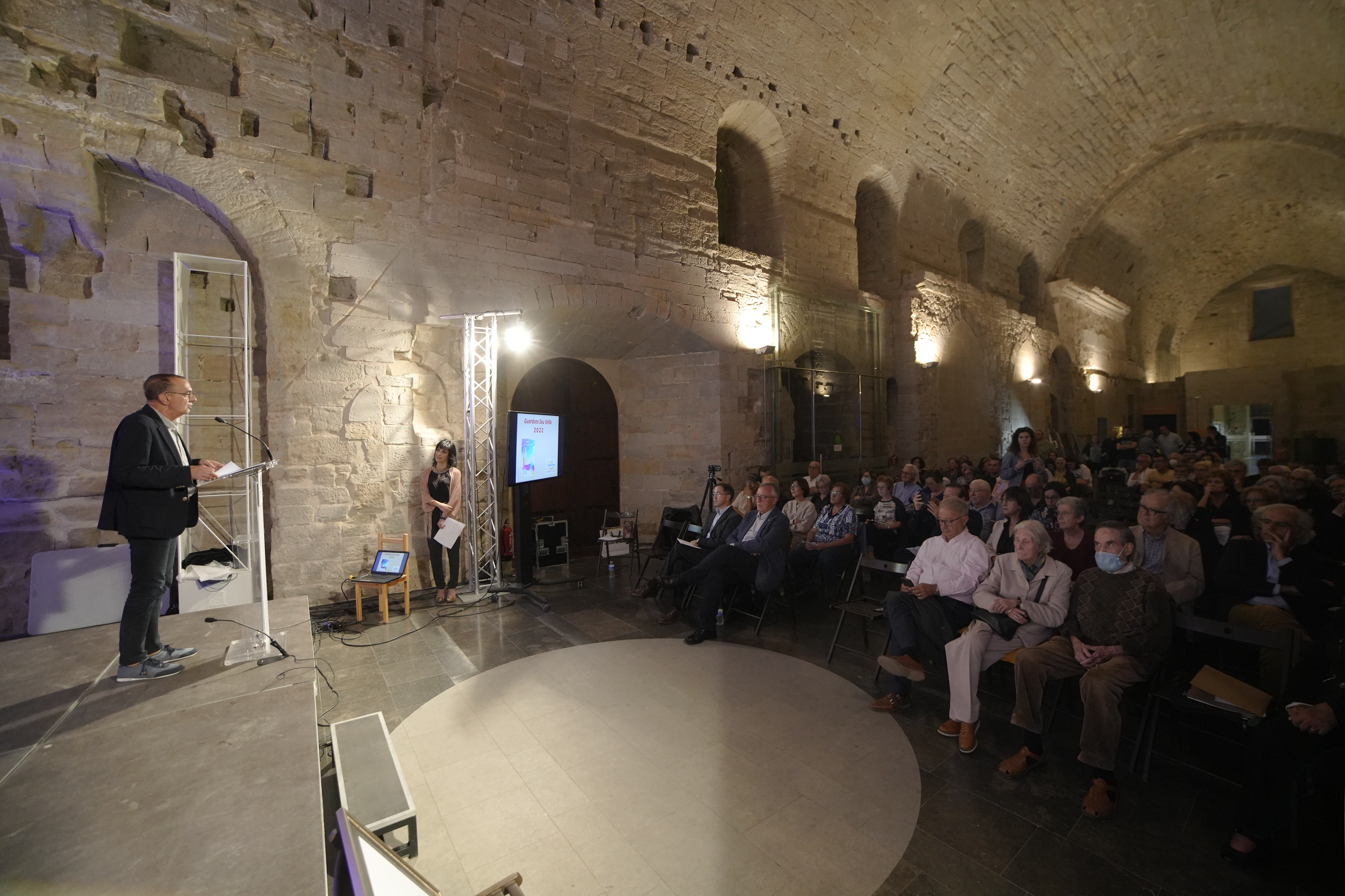 La Sala Gran de la Canonja ha acollit aquest vespre l’acte de lliurament dels Guardons Seu Vella 2022, uns premis instituïts pels Amics de la Seu Vella, que enguany ha fet un reconeixement a la trajectòria de Ximo Company Climent, catedràtic de la Universitat de Lleida, director del CAEM i delegat del Patrimoni Artístic i cultural del Bisbat de Lleida. Al mateix temps, s’ha fet una distinció a títol individual a Josep Varela i Serra i una altra en la categoria d’entitats a les Escoles FEDAC Lleida (Col·legi Dominiques l’Anunciata).