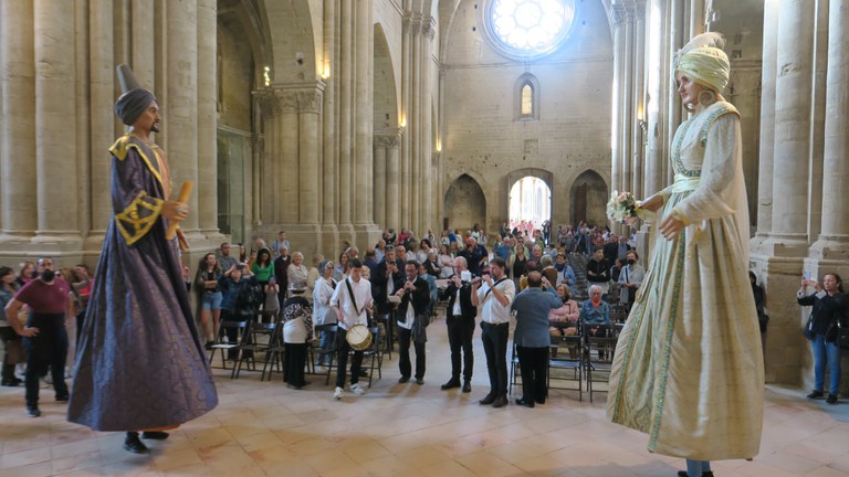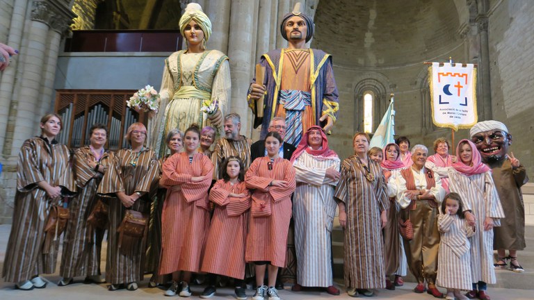 Després de la celebració eucarística que ha presidit el bisbe de Lleida, Mons. Salvador Giménez Valls, la nau central de la catedral ha estat l’escenari de l’aniversari de la geganta mora, la reina Zobeida, que compleix 70 anys. Un acte en què ha intervingut Felip Vilardell, president de l’Associació d’Amics dels Gegants de Lleida i Lo Marraco, i que ha rebut la felicitació de les comparses moros de la Festa de Moros i Cristians de Lleida en forma d’ofrena floral i l’homenatge dels geganters de la Seu d’Urgell, que hi ha participat.