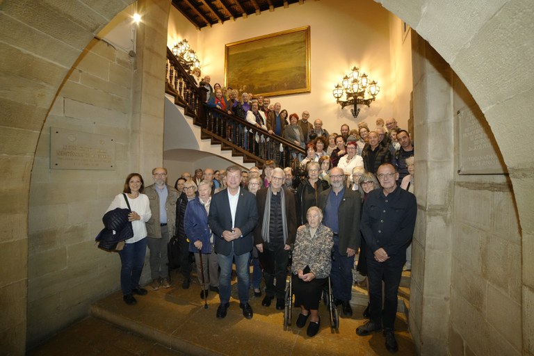 El paer en cap, Miquel Pueyo, es reuneix amb els participants per agrair la tasca de l’entitat amb qui la Paeria comparteix projectes, ja que “només des de la cultura de la pau i accions de conscienciació com les que ens uneixen, podrem avançar i esmenar d’alguna forma un dolor que supera generacions” El president de l’Amical, Juan Manuel Calvo, alerta sobre el perill de l’extrema dreta, que “avança amb total impunitat