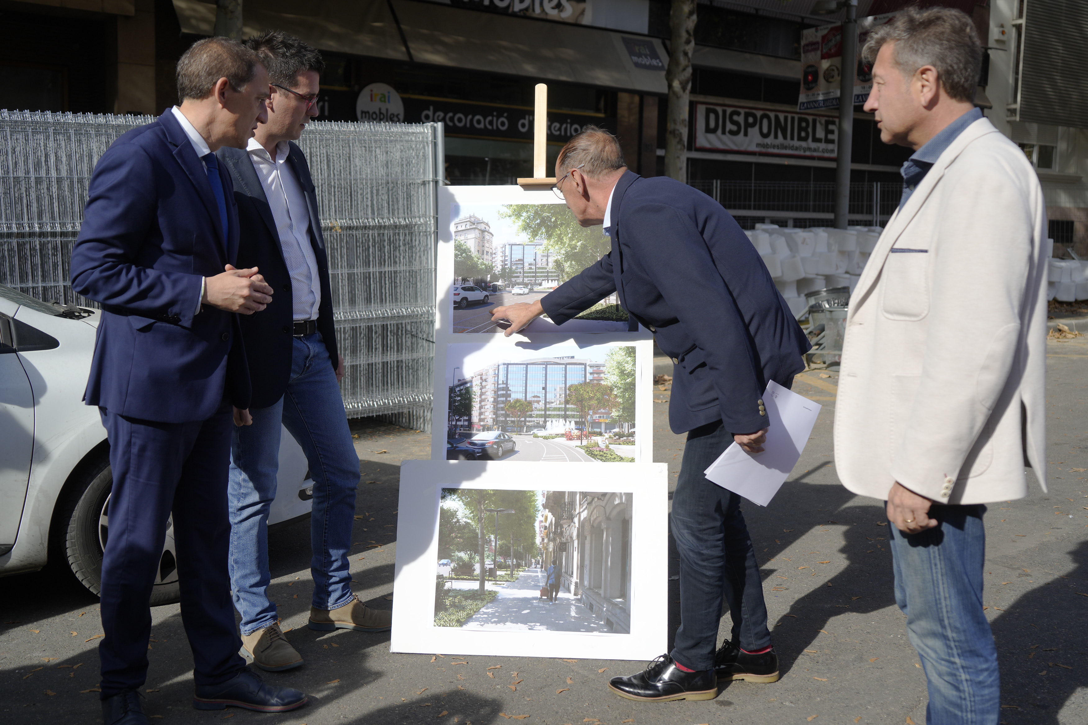 El Paer en Cap, Miquel Pueyo, i el primer tinent d'alcalde, Toni Postius, han visitat avui les obres, finançades amb fons europeus, i han explicat que formen part de la gran transformació urbana que viurà Lleida en els pròxims mesos L'actuació té un pressupost d'1,17 milions d'euros, estarà acabada al març i permetrà guanyar espai per als vianants, com una nova plaça a l'enllaç amb Lluís Companys