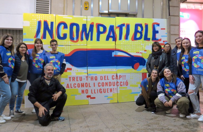 Igualment, es donarà continuïtat a la campanya que es va presentar l’any passat sobre el binomi alcohol i conducció i que, sota el lema “Incompatible” vol visualitzar els riscos que s’assumeixen si es condueix un vehicle havent consumit alcohol. Es repartiran flyers informatius amb propostes de vies alternatives per anar de manera segura. Durant la tarda es pintarà un mural mòbil amb una de les imatges de la campanya creades per l’estudi creatiu Cactusoup.