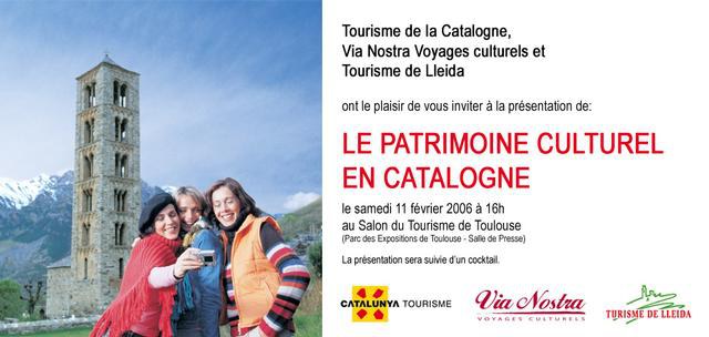 Els serveis de promoció d'aquest organisme participaran a la presentació “Le Patrimoine culturel en Catalogne" adreçada als mitjans de comunicació i als representats de sector turístic del sud de França. L'acte, que tindrà lloc dissabte dia 10 a les 16 h, l'han organitzat el Centre de Promoció de Turisme de Catalunya a Paris i Via Nostra Voyages Culturals, tour operador especialitzat en viatges culturals que programa circuits de la Catalunya Romànica.