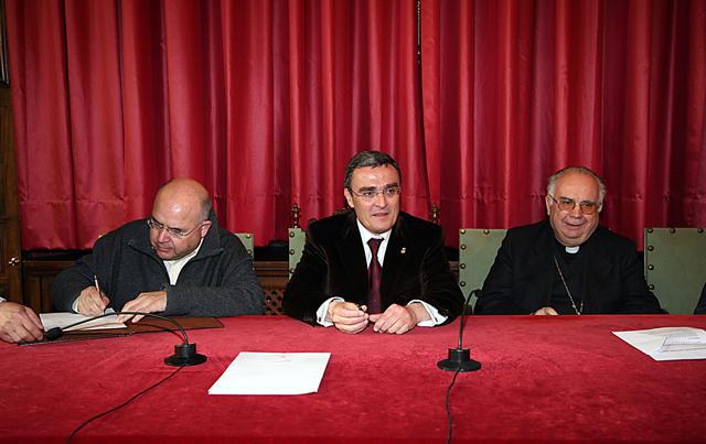 L’alcalde de Lleida, Àngel Ros, el bisbe de Lleida, Francesc Xavier Ciuraneta i el director de l’Institut Superior de Ciències Religioses de Lleida, Ramon Prat, han signat un conveni de col·laboració amb l’objectiu d’estretir la relació entre ambdues entitats. L’acord signat avui estableix la cooperació en la difusió d’activitats mútues i en simposis i congressos que es facin a Lleida sota la temàtica religiosa i permetrà oferir el cursos de l’IREL al personal de l’Ajuntament de Lleida com a formació continua.