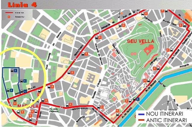 Amb aquesta modificació de la línia, l'autobús provinent del carrer Pius XII seguirà pel carrer Ferran el Catòlic, enlloc de girar a Pius XII com fins ara. A Ferran el Catòlic hi haurà la primera nova parada. Després avançarà fins al carrer Rossinyol i allí, a la cantonada amb el carrer Ferran el Catòlic, realitzarà la següent parada. Tot seguit entrarà a la plaça Barcelona on tindrà la tercera parada i seguirà pel carrer La Rioja on efectuarà la darrera parada a la cantonada amb Pius XII.