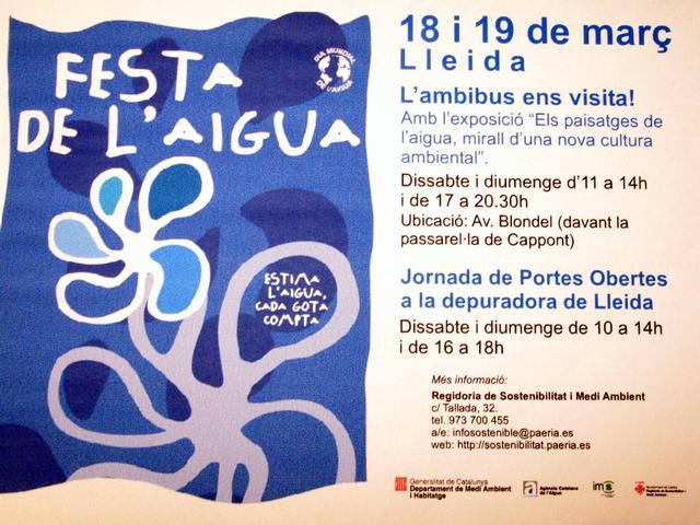 L'Ajuntament de Lleida se suma aquest cap de setmana a la commemoració del Dia Mundial de l'Aigua amb unes jornades de portes obertes i visites guiades a l'Estació Depuradora d'Aigües Residuals de Lleida. Alhora, en col·laboració amb l'Agència Catalana de l'Aigua, restarà ubicat a l'avinguda Blondel l'Ambibús: una unitat mòbil d'educació ambiental del Departament de Medi Ambient del Govern català. La regidora de medi ambient i sostenibilitat de la Paeria, Mercè Rivadulla, ha assegurat que Lleida camina en la bona direcció de la gestió responsable de l'aigua malgrat que encara ha de fer molts passos. En aquest sentit, Rivadulla ha recordat el treball de recuperació fet a la Mitjana, als Aiguamolls de Rufea i el que cal fer al camí natural del riu.