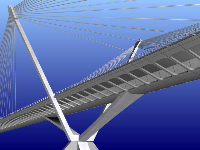 El nou pont sobre el riu Segre està concebut per esdevenir una obra singular. En aquest sentit, Javier Manterola ha assegurat que"el disseny és únic al món en quant a proporcions". Es tracta dun pont subjectat amb "tirants" d'acer que en la seva totalitat dóna sensació de lleugeresa i transparència. Està format per una plataforma llinda recolzada sobre una estructura tetràpode dos braços de la qual s'enlairen uns 39 metres per allotjar els cables que subjecten la plataforma. Els materials de la construcció aporten lleugeresa a l'estructura i estan formats per formigó, paviment i acer.