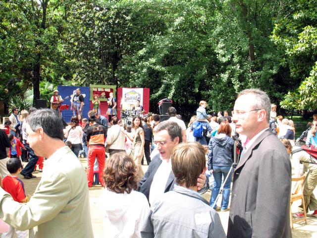 L'alcalde, Àngel Ros, i el tinent d'alcalde Xavier Sàez gaudeixen de la matinal amb els més petits