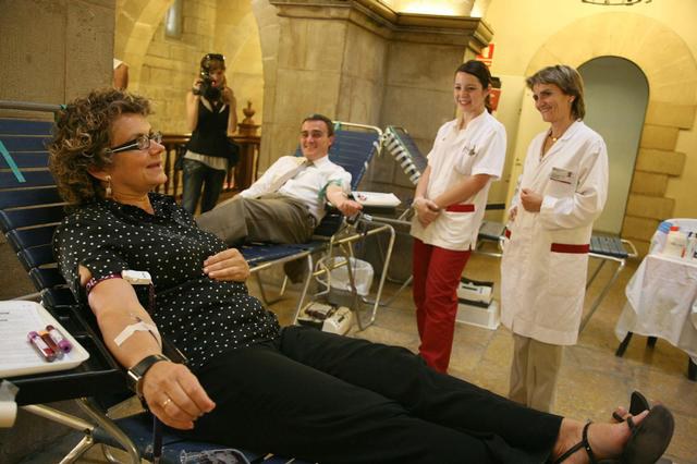 La consellera de Salut de la Generalitat, Marina Geli, ha participat avui en la jornada de donació de sang que s'ha fet a Lleida, coincidint amb la celebració del Dia Mundial del Donant. L'alcalde, Àngel Ros, el director dels Serveis Territorials de Sanitat, Sebastià Barranco, i el regidor de Salut Pública, Gerard Ferrer, també han col·laborat en la donació, que s'ha fet al Pati del Palau de la Paeria.