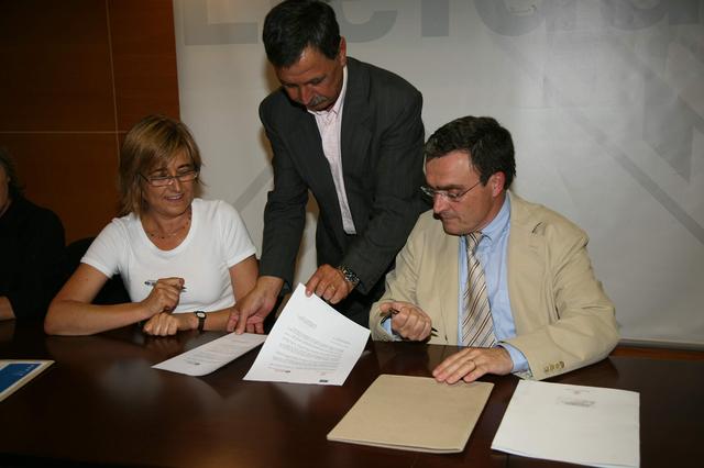 L’alcalde de Lleida, Àngel Ros, i la presidenta delegada de l’àrea de Medi Ambient de la Diputació de Barcelona, Núria Buenaventura, han signat un acord de col·laboració per al desenvolupament del projecte Gesmopoli al Polígon Industrial del Segre.